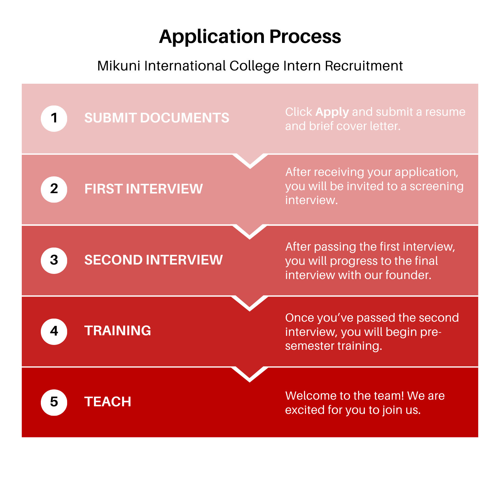 My experience at Mikuni was amazing. The people were especially wonderful, because they were so kind and welcoming. Things were run very smoothly, and my transition into teaching was well supported. I wish I could’ve stayed longer!